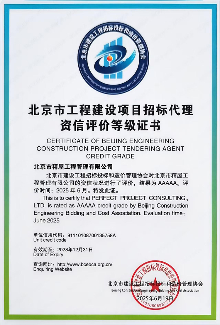 公司注冊資本金1200萬元,具有工程造價咨詢單位甲級資質證書(現為造價咨詢資信評價4A級證書)、工程招標代理機構甲級資質證書(現為招標代理資信評價5A級證書)、政府采購代理甲級資格證書(已在財政部和北京市財政局備案)、工程咨詢單位乙級資信證書,2018年列入北京市市級行政事業定點服務單位、中央國家機關造價咨詢定點服務單位。分別于2016、2018年及2019年被北京市造價與招投標管理協會評定為誠信服務代理機構。